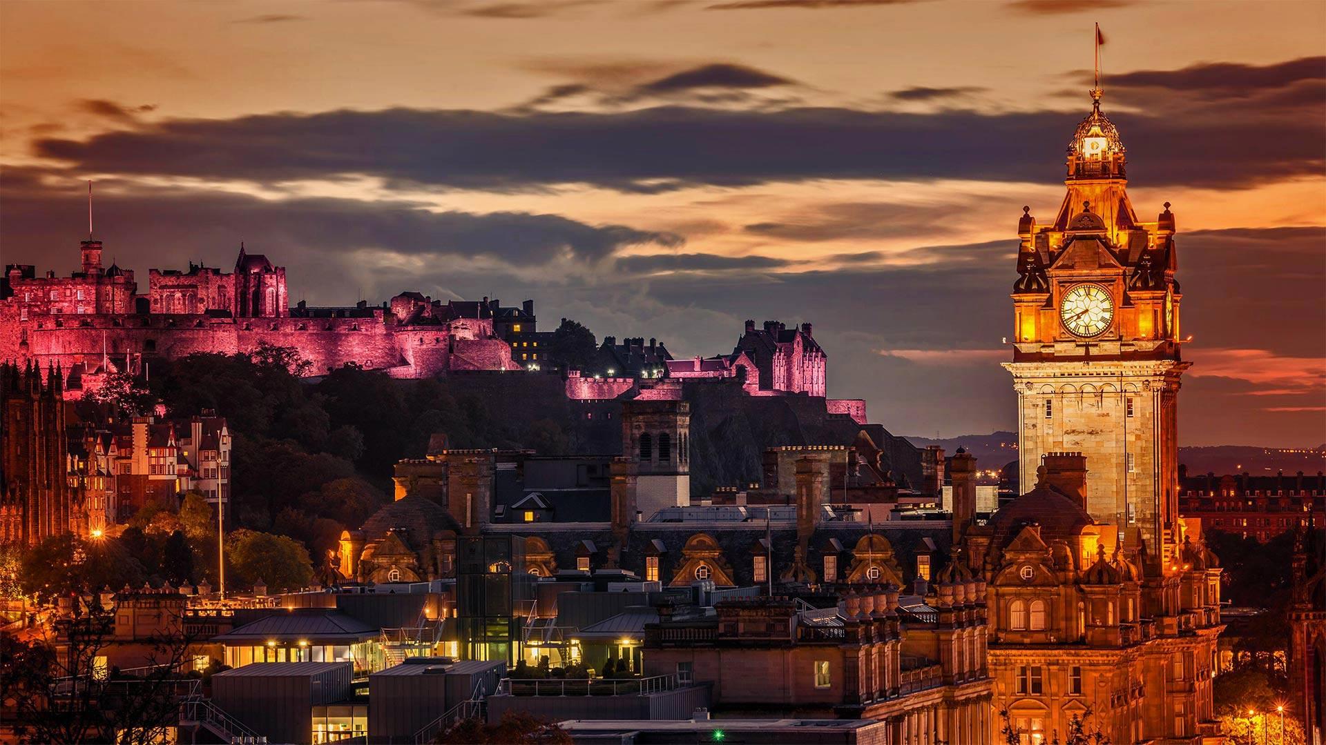这是世界闻名的爱丁堡城堡,它灯火辉煌,守护着苏格兰的首都。今天,城堡举办了皇家爱丁堡军乐节,这场表演到处都是风笛、鼓和似乎足够覆盖整个苏格兰的苏格兰短裙,可以说是一次全方位的苏格兰体验。热情的游客还可以在皇家大道上的许多旅店中尽情享受威士忌和肉馅羊肚。皇家大道是一条色彩缤纷、繁华热闹的历史街道,从城堡一直延伸到伊丽莎白二世女王在苏格兰的官邸荷里路德宫。
