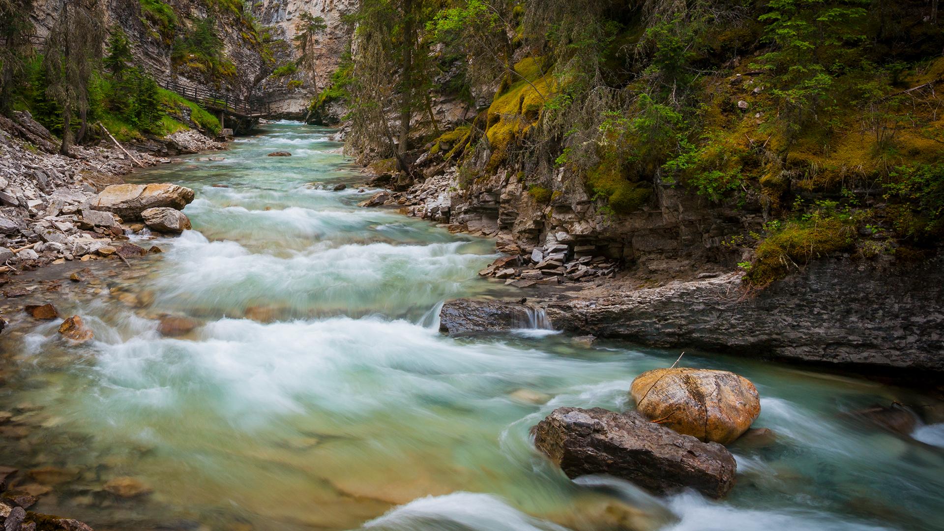 在阿尔伯塔省的班夫国家公园,你也可能拍到这样的照片。照片里的约翰斯顿峡谷,是公园里最容易进入的徒步地点之一。由于靠近横穿公园的加拿大横贯公路,它十分受欢迎。这里不仅人多,鸟也多,所以也是公园里较好的鸟类观测点之一。