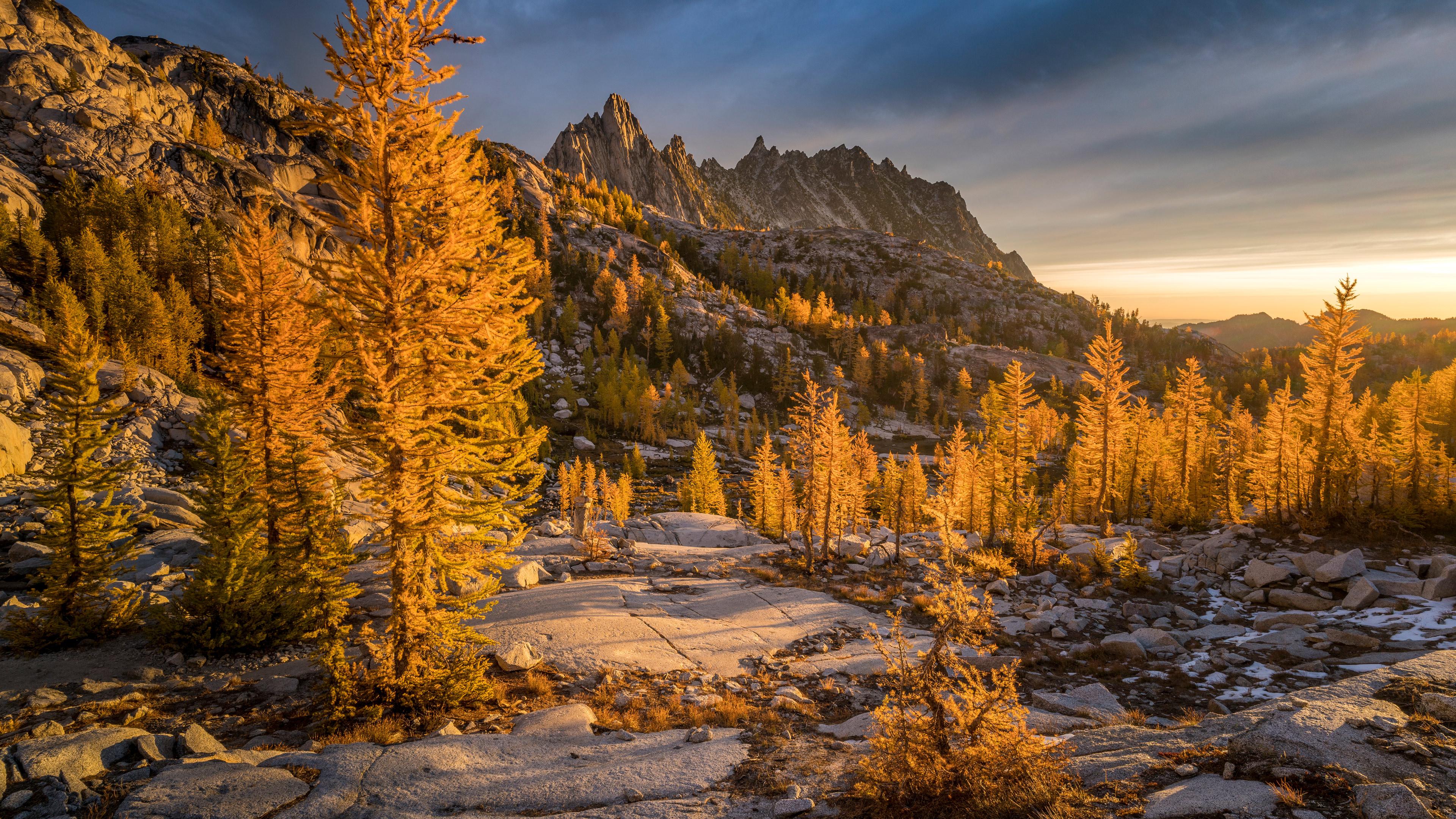 华盛顿州的魔力地带拥有700多个高山湖泊和池塘。早在欧洲定居者到来之前,魔力地带是美国原住民雅基马、奇努克和韦纳奇部落的家园。20世纪的伐木和采矿浪潮改变了这里的大部分地貌。如今,成群的山羊在公园里吃草,岩雷鸟在树上栖息。落叶松的针叶变成了金黄色,给岩石地形投下了温暖的光辉,这片土地也随之发生了变化。普鲁西克峰在魔力地带中脱颖而出,它不仅是华盛顿州喀斯喀特山脉阿尔卑斯湖荒野区的一颗璀璨明珠,也是该地区和魔力地带的象征。对于经验丰富的徒步旅行者和攀岩者来说,这是一个绝佳的地点,这里有各种难度的攀岩路线,吸引着熟练的登山者或冒险者一试身手。