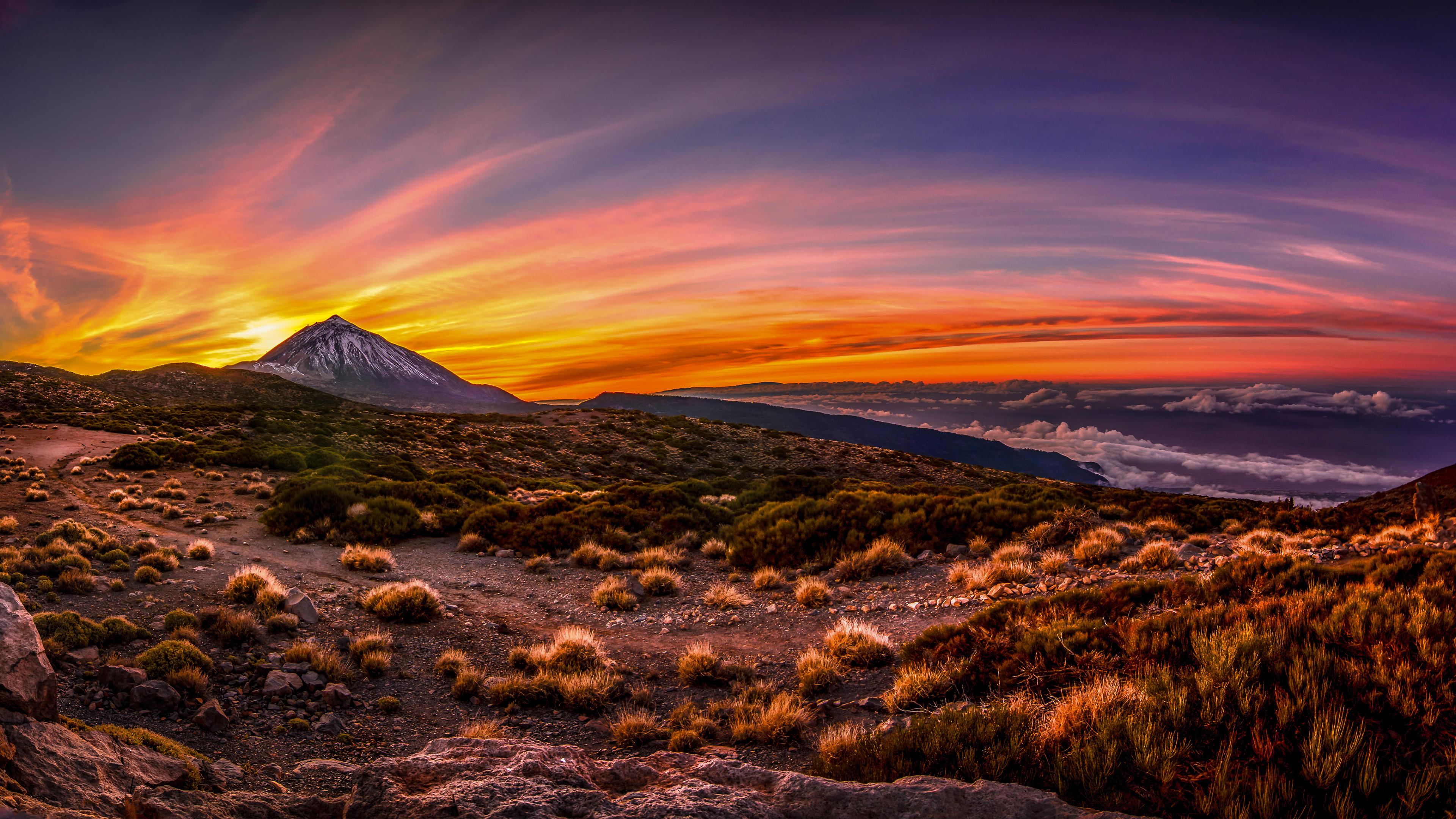 雄伟的泰德峰海拔3718米,耸立在加那利群岛上。这座火山从海底隆起的高度达到了惊人的7500米,因此它既是西班牙最高的山峰,也是世界上海拔第三高的火山。