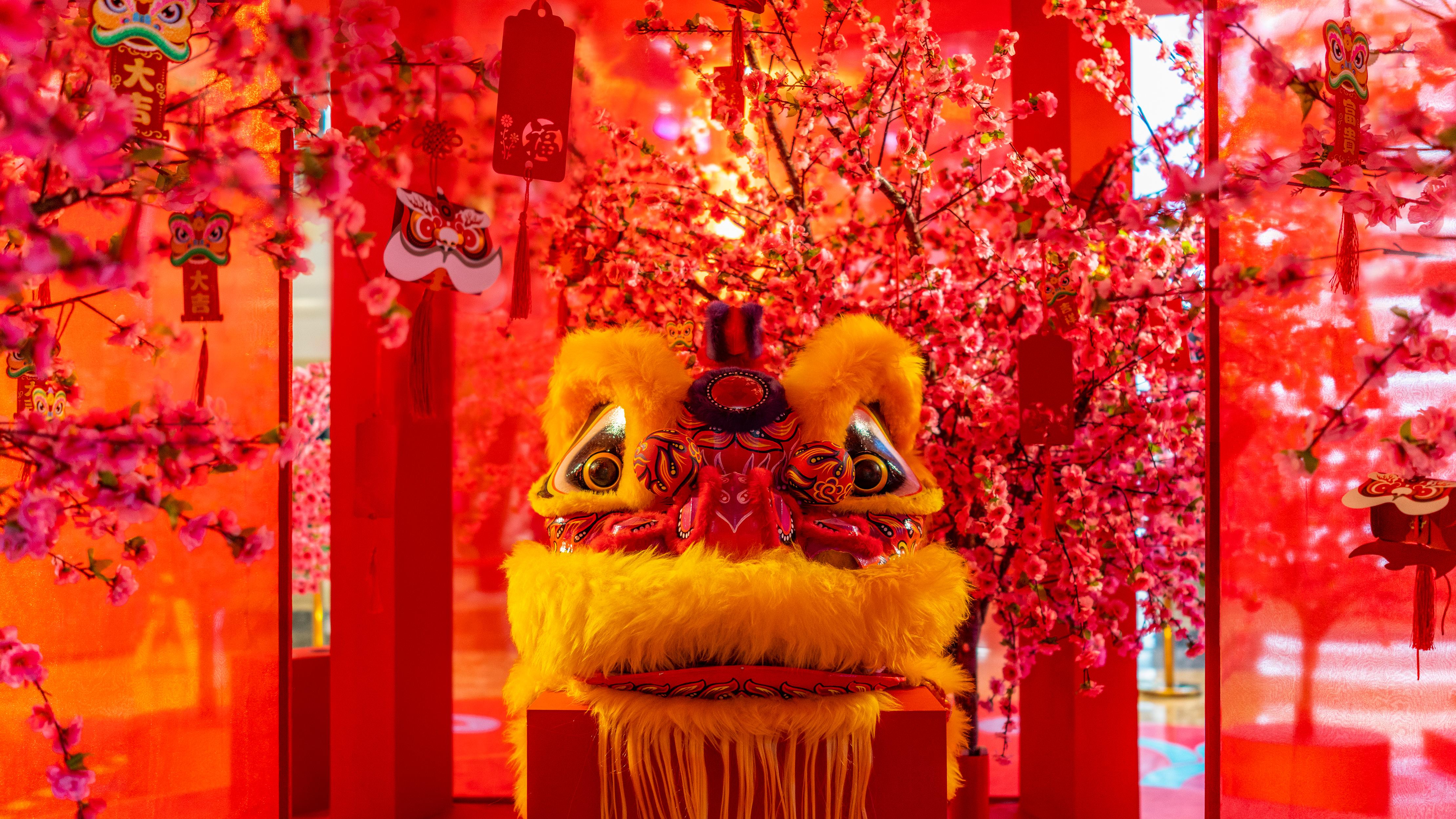 炮竹声中辞旧岁,烟花满天迎新春。从年初一开始便进入迎禧接福、拜祭神祖、祈求丰年主题。在春节期间,全国各地均有举行各种庆贺新春活动,带有浓郁的各地地方特色。中国民俗传统,认为舞狮可以驱邪辟鬼。故此每逢喜庆节日,都喜欢敲锣打鼓,舞狮助庆,长盛不衰,历代相传。新的一年,喜气洋洋,万事胜意!