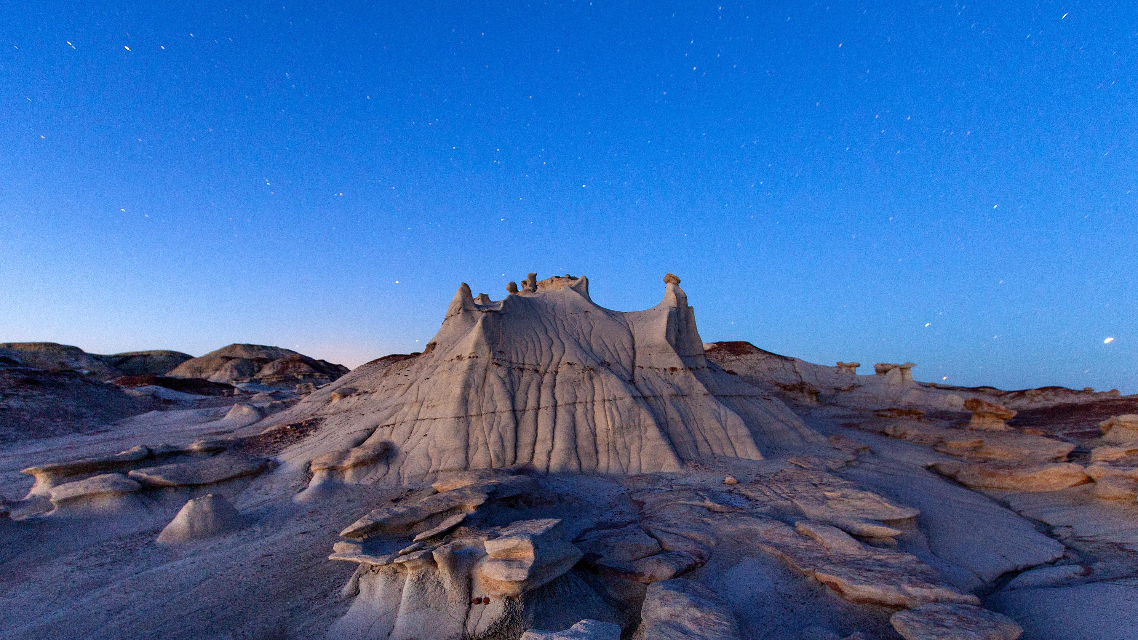 时间是伟大的变革者,它改变着世界,也改变着我们所有人。例如,新墨西哥州的这片名为比斯第恶土的荒地,曾经是一片郁郁葱葱的热带森林。近7000万年前,这里没有扭曲的地形和高耸的尖塔,而是一群白垩纪晚期恐龙的家园,包括甲龙、鸭嘴龙和强大的霸王龙。如今,这里到处都是另一种奇观,岩层看起来更像是雕塑,而不是自然现象。比斯第恶土的名字“Bisti/De-Na-Zin”是以纳瓦霍语命名的:“Bisti” 的意思是 "在土坯岩层中",“De-Na-Zin” 则来自附近的 "站立的仙起重机"石刻。来到四角地区的游客一定不要错过这片由页岩和砂岩组成的超凡脱俗的景观。