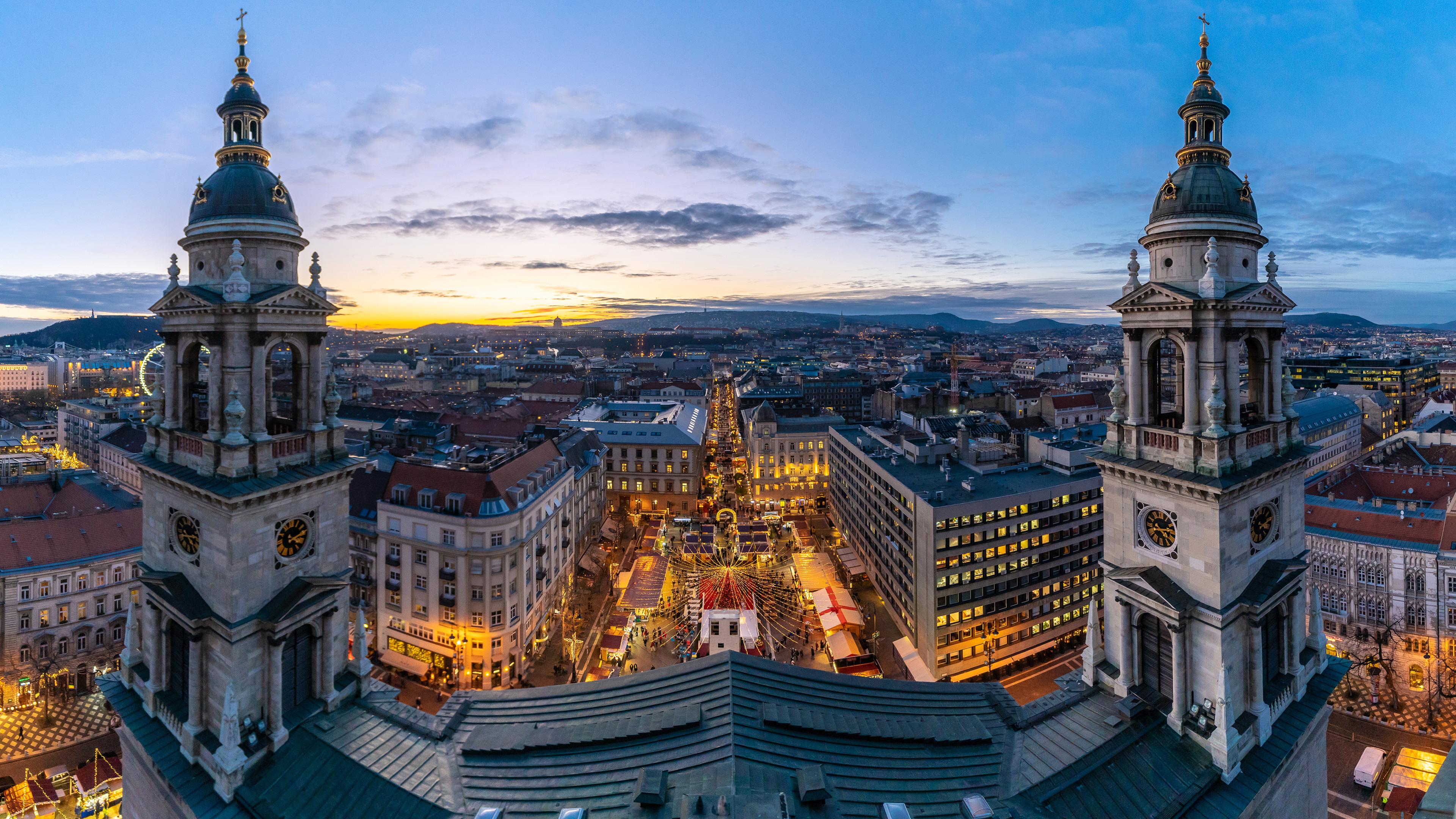 这座新古典主义风格的大教堂是为了纪念匈牙利第一位君主斯蒂芬一世(又称圣斯蒂芬国王)。经过数十年的建设,该教堂于1906年竣工,教堂顶部是一个高耸的圆顶。游客可以参观教堂,欣赏错综复杂的彩色玻璃,或瞻仰据说是国王本人木乃伊化的右手遗骸。穹顶上有一个观景台,游客可以在此俯瞰城市的全景,如今天的图片所示。