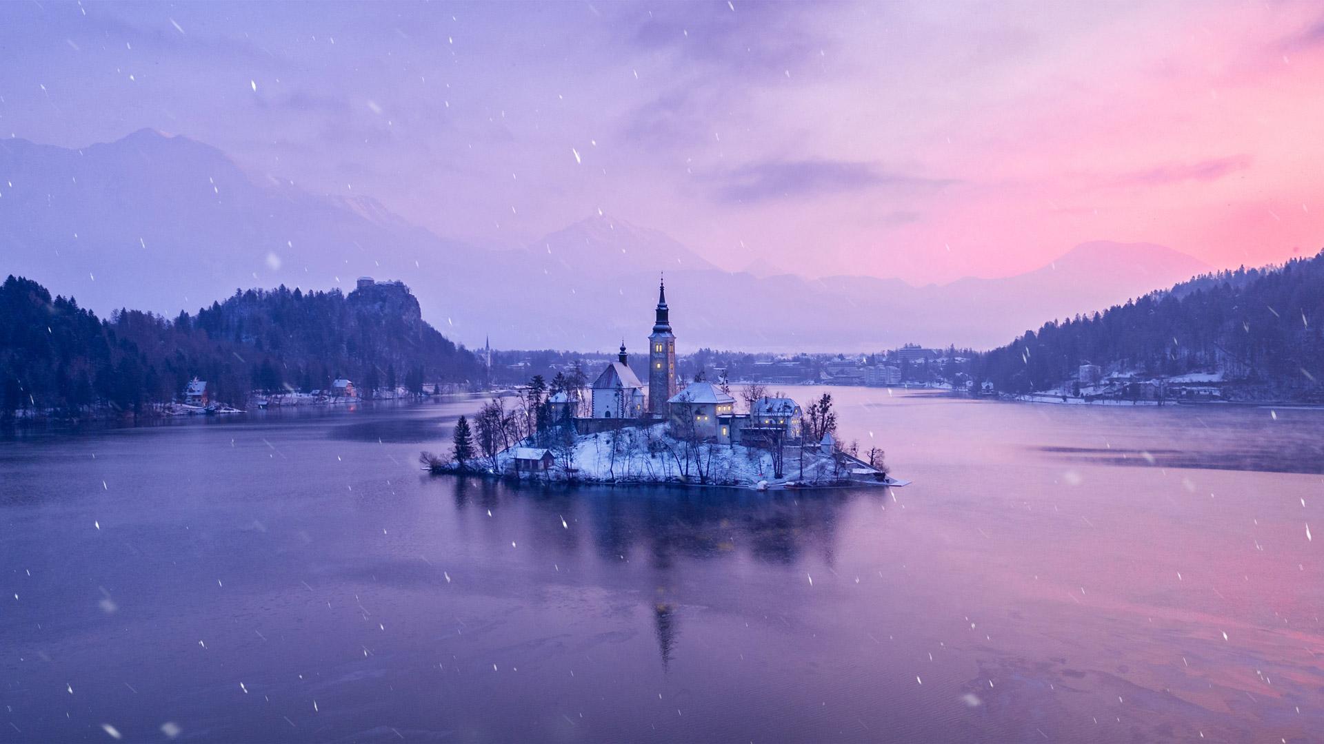 斯洛文尼亚的布莱德湖在夏季备受关注,而在冬季,这里的一切都放慢了脚步。湖水碧绿,色调柔和,湖心岛上的古朴教堂宛如从冬季童话中走出的一般,正如今日图片所示。这座长1.3英里的湖泊,被积雪覆盖的朱利安阿尔卑斯山环绕,形成于大约14,000年前的冰川与地质活动。布莱德岛上最早的定居迹象可追溯至新石器时代(公元前10,000年至公元前3,000年)。此外,考古学家在这里还发现了公元9世纪的中世纪早期墓地。如今,这里坐落着圣母升天教堂,其现有建筑形式建于17世纪末,游客们会在这里敲响“许愿钟”以祈求好运。