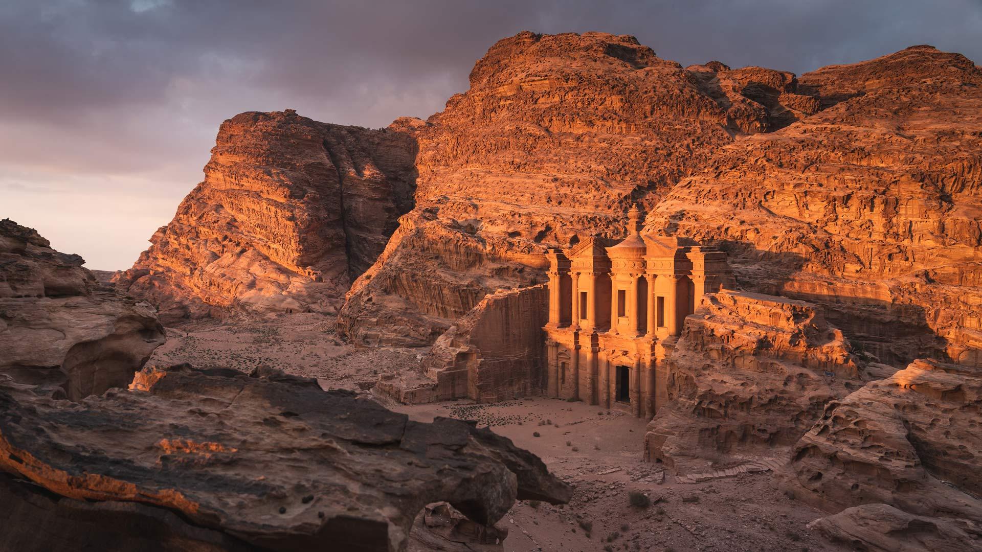 佩特拉及其皇冠上的明珠——代尔修道院,雕凿在玫瑰色的悬崖峭壁上,让人仿佛置身于电影《印第安纳琼斯》的探险场景中。这座古城坐落在约旦干旱沙漠地貌的中心,曾在公元前2世纪作为纳巴泰王国的首都而繁荣一时。它还是香料贸易的枢纽,连接着中国、埃及、希腊和印度等遥远地区。