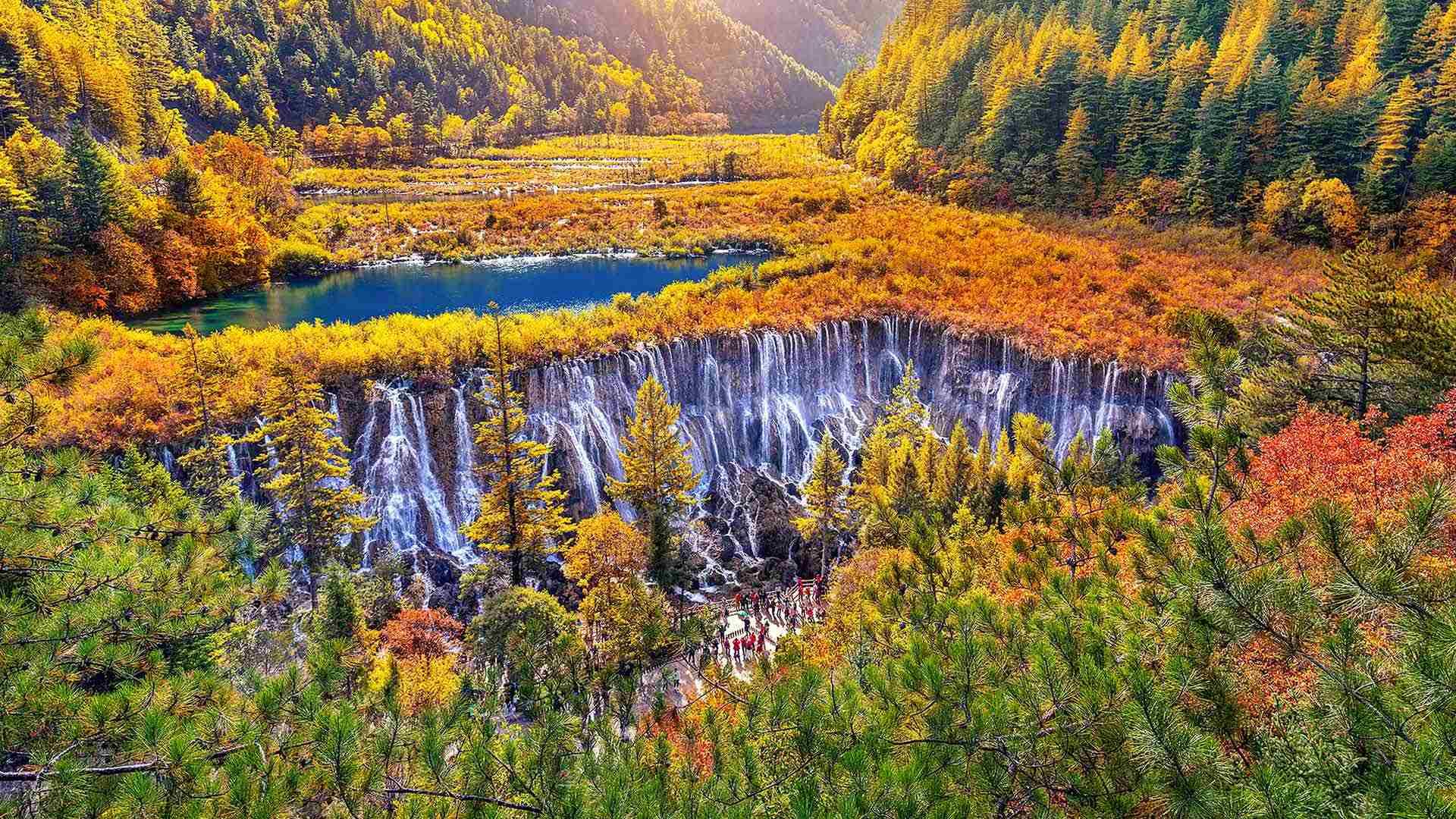 立秋是秋季的第二个节气。这意味着夏季的炎热将从此消失。不过,天气依然闷热,不像秋天。人们称这种天气为 “秋老虎”,通常从8月22日左右开始,到8月24日左右结束。 诺日朗瀑布距四川省会成都400公里,位于九寨沟景区中部,地理位置优越。距离典型藏式建筑的游客服务中心仅 300米(984英尺)。诺日朗在藏语中的意思是男性之神,强壮而威武。它海拔2365米(7759英尺),是中国最大的洞穴瀑布之一。