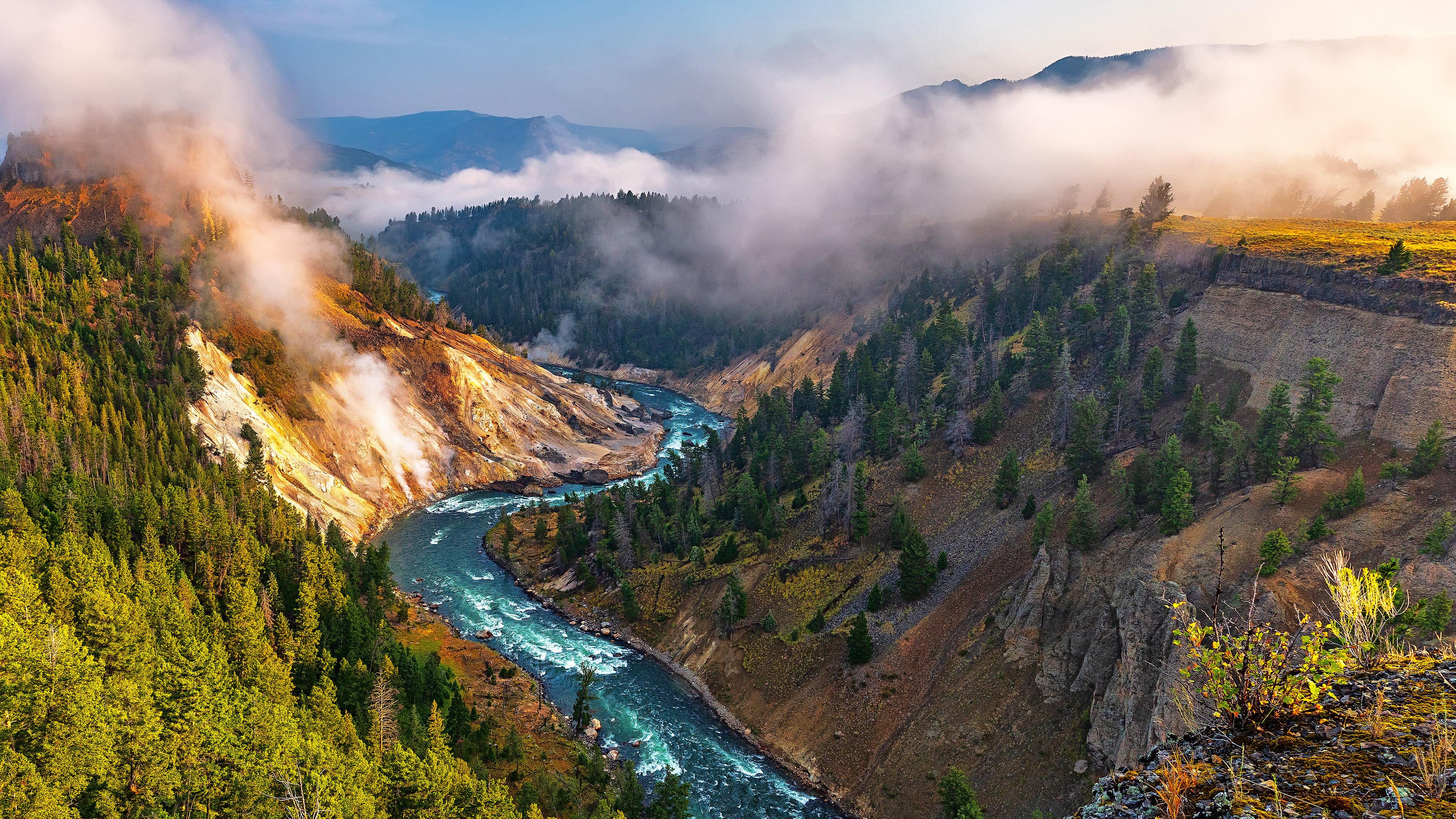 黄石河是美国本土48州最后一条未建坝的主要河流,它从黄石公园东南方向发源,全长671英里(1080公里),汇入密苏里河,最终汇入大西洋。这座地热与峡谷交汇的观景台,让您近距离欣赏黄石河蜿蜒流经熔岩锻造的峡谷的壮丽景色。沿着玄武岩峭壁,可以看到富含矿物质的地下水仍在冒着热气,形成了白色的矿藏,方解石泉也因此得名。您或许还能看到白头鹰在头顶滑翔,或是野牛在附近悠闲地休息。黄石公园不仅仅是一个公园,它更是一座拥有游客中心的超级火山。