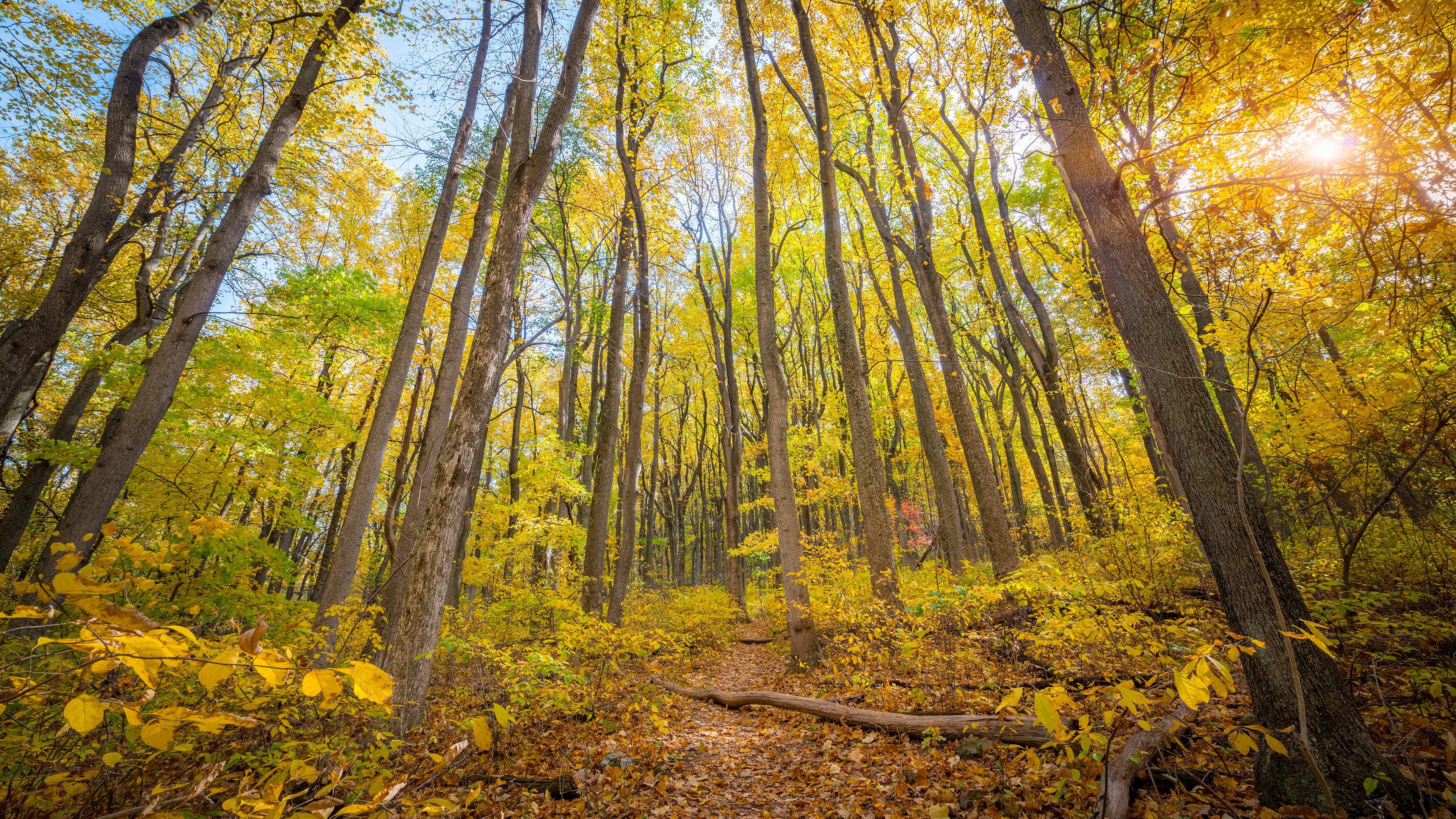 谢南多厄国家公园,弗吉尼亚州的山间瑰宝。蓝岭山脉在此披上最华美的盛装:金黄的山核桃树、绯红的枫树,以及镀上青铜色的橡树。十一月的空气愈发清冽,秋日的余晖低声细语,悄悄停留在山坡上。沿着天际线公路缓缓前行,105英里的蜿蜒公路带你俯瞰云海翻涌,云影在山谷间轻轻流动,像思绪在天空漂移。这里还有超过500 英里的步道,沿着小径,你会走进瀑布奔流的深谷,登上触碰天际的高峰。石人峰、鹰嘴峰、暗谷瀑布——每处皆是石与叶谱写的诗篇,静待游人的脚步与风声共鸣。
