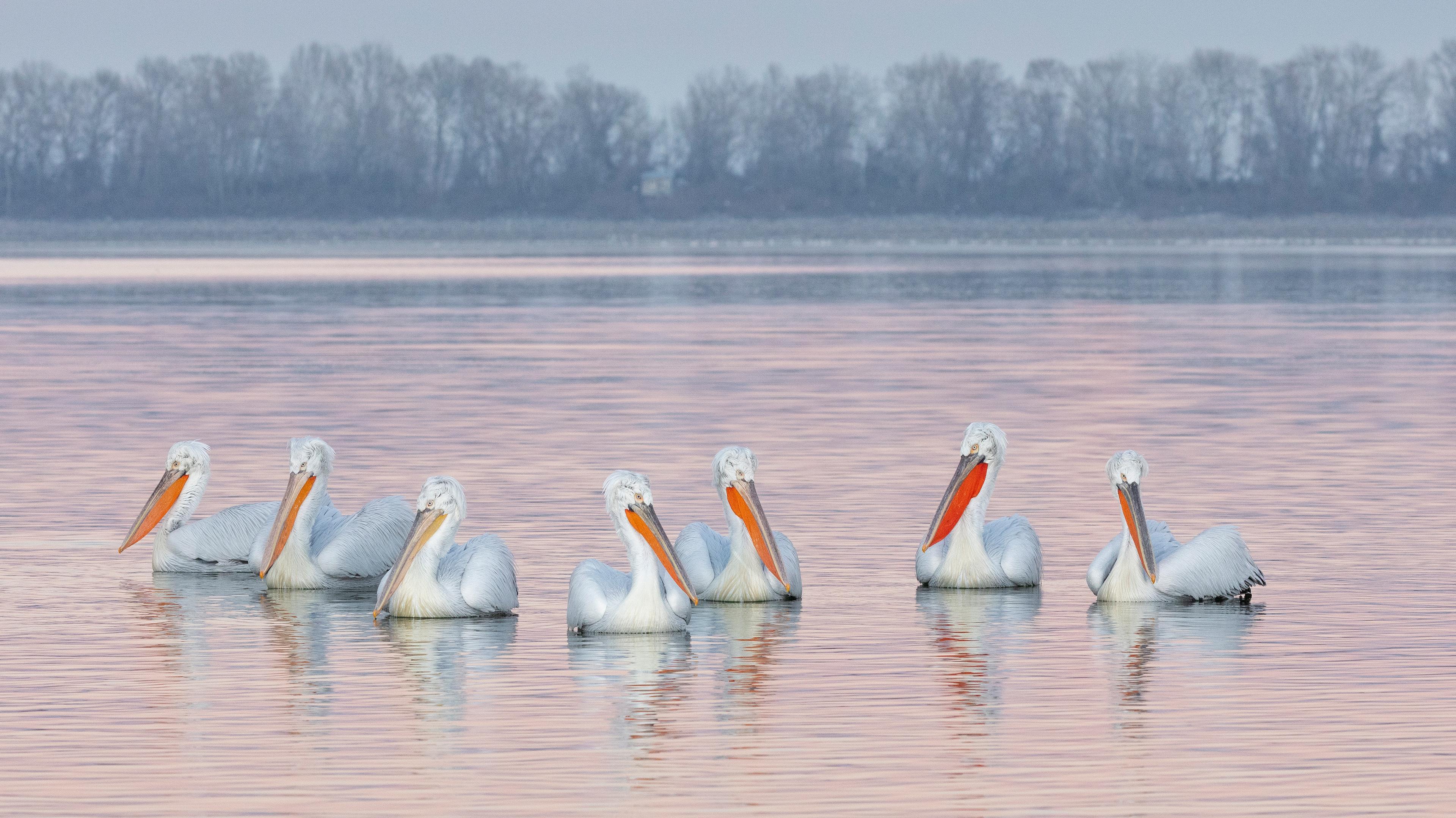 在冬日的凯尔基尼湖,你能捕捉到欧洲最震撼的卷羽鹈鹕身影。它们巨大的身形在平静的湖面上成群滑行,沉稳而优雅,令人难以忽视。卷羽鹈鹕翼展超过10英尺,是世界上体型最大的飞行鸟类之一。得益于凯尔基尼湖稳定的冬季气候,你可以近距离欣赏它们的巨大身姿、优雅姿态,以及群体滑行时那种令人着迷的默契。 进入深冬后,鹈鹕也进入繁殖季的“换装期”。它们的喉囊会染上一抹明亮的橙红,与浅灰的冬羽形成强烈对比。由于卷羽鹈鹕会在凯尔基尼湖固定集结,这些细微的变化几乎可以每周追踪,甚至能观察到它们的觅食方式、社群互动,以及宣告繁殖季到来的体态变化。湖区开阔的视野也让所有注意力自然落在鸟儿本身和它们的日常之中,不受外界干扰。 尽管冬季数量可观,卷羽鹈鹕仍被列为“近危”物种。栖息地丧失、人类干扰以及与电线的碰撞,依然阻碍着它们的恢复。正因如此,凯尔基尼湖这类受保护的湿地,才成为维系繁殖族群与长期保育工作的关键。