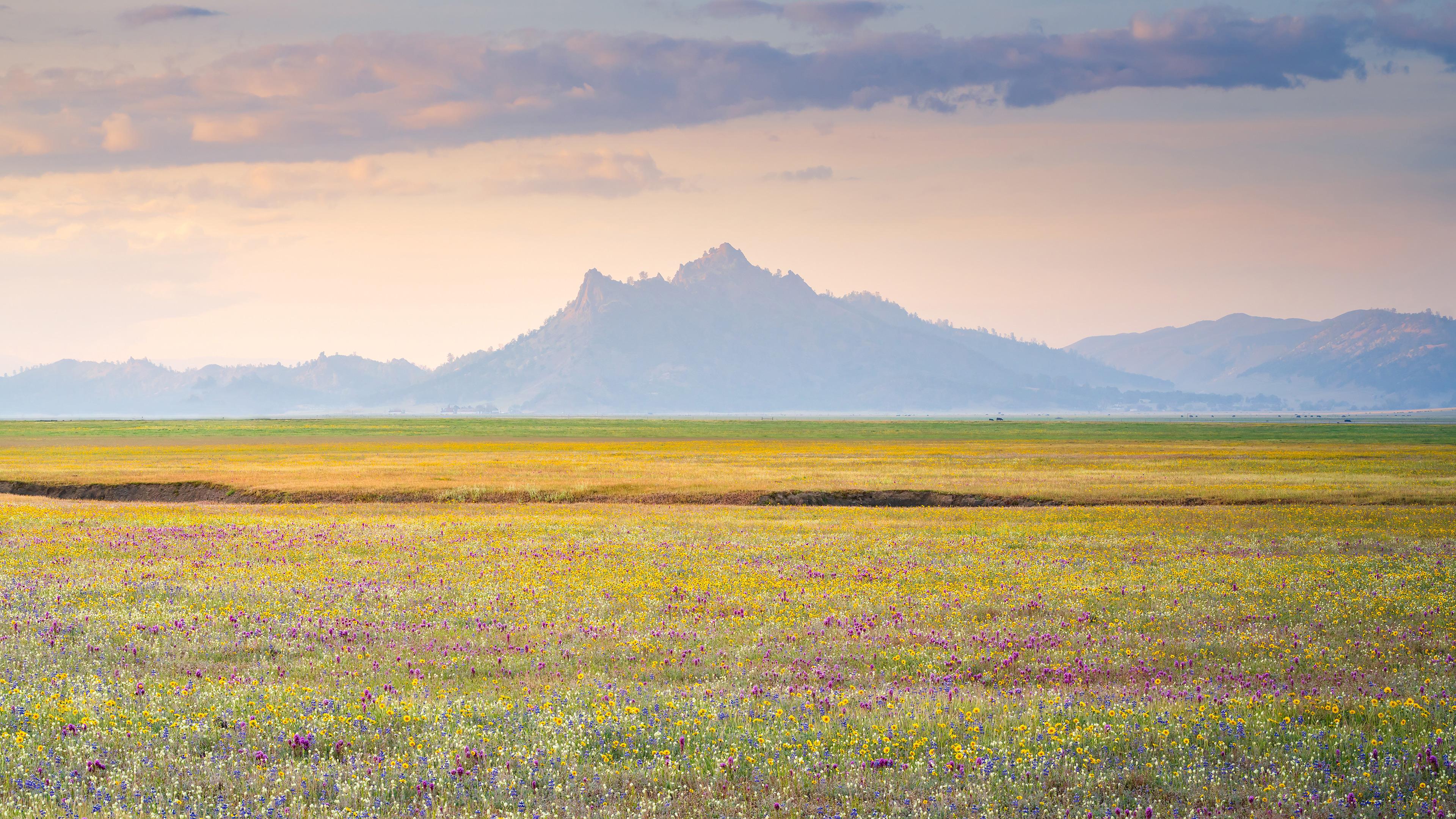 春意盎然的加州中央谷地在冬雨过后,野花竞相绽放,宣告着春天的到来。这片南北绵延约450英里、面积约2万平方英里的山谷,是世界上农业生产力最高的地区之一。然而,在早春时节,这里又会短暂地展现出一种古老的景象。从三月到四月,当气温和土壤湿度达到适宜水平时,金盏花、整齐叶草和猫头鹰三叶草等本地一年生植物便会迅速发芽。它们争分夺秒地完成生命周期,以迎接漫长旱季的到来。 这些物种大多是加州原始草原生态系统的遗存。如今,它们主要栖息在自然保护区、未开垦的土地以及田野间的狭长地带。它们的种子可以保持活力数十年,只有在特定条件下才会发芽。降雨模式会影响花期的强度和分布。土壤质地和排水情况的差异造就了每年春天出现在山谷底部的条带状和斑块状花海。在短短几周内,农业历史和生态历史交织在同一片土地上。