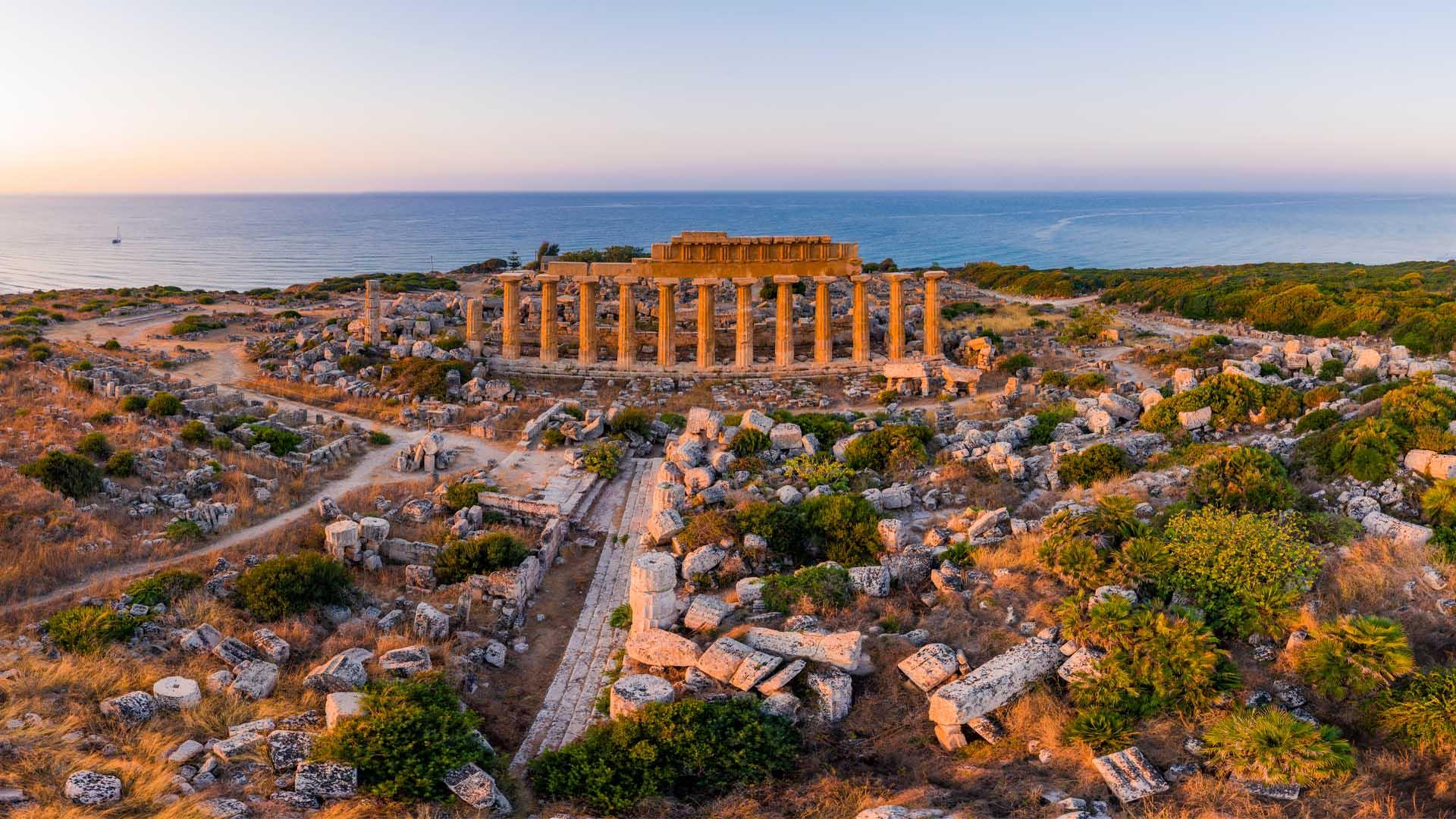 这座神庙建于公元前6世纪,得名于其所在地——当时的希腊殖民地塞利农特。即使今天,希腊建的卫城的遗迹依然可见,以其宏伟的气势镇守着西西里海岸的这一片土地。这座神庙属于两种建筑风格之间的过渡时期,即多立克柱式和古典柱式。柱子的檐口上有各种主题的精美浮雕,如宙斯和赫拉、阿尔忒弥斯和阿克泰翁。