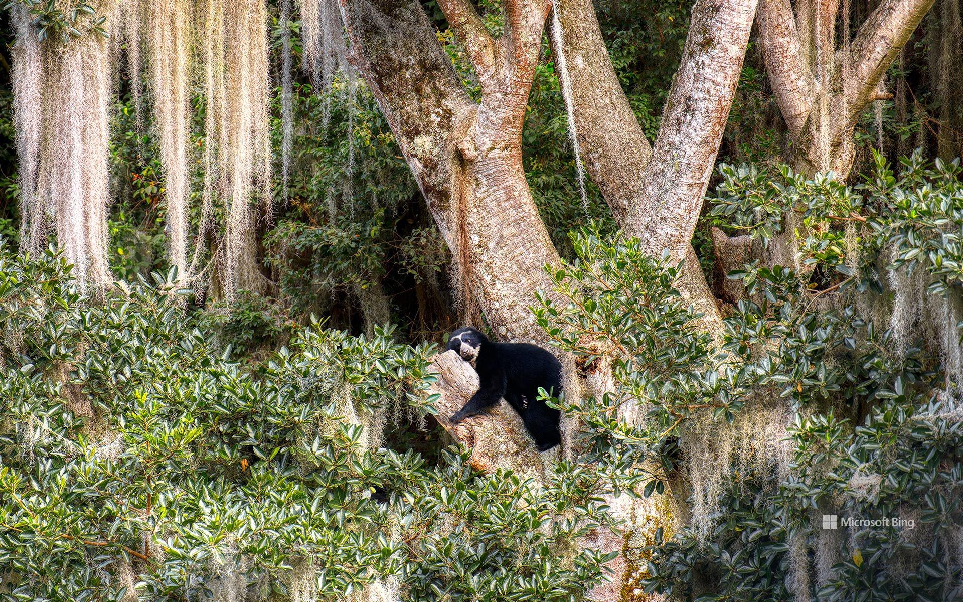 眼镜熊在树上休息, 厄瓜多尔 (© Andy Rouse/Nature Picture Library)